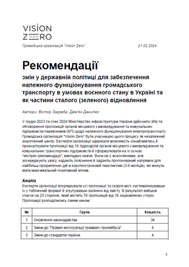 Рекомендації змін у державній політиці для забезпечення належного функціонування громадського транспорту в умовах воєнного стану в Україні та як частини сталого (зеленого) відновлення