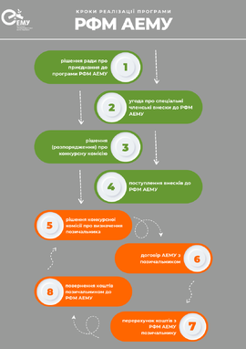 The municipality transfers funds to the RFC as a special membership-fee based on decisions made by the city council. Through mutual agreement with the respective municipality, EECU provides the revocable financial assistance to Homeowners Associations (HoAs) of co-owners of multi-apartment buildings that is participating in the state funded program "Energodim" to facilitate the pre-finance energy efficiency measures. Upon the completion of the undertaken measures by the HoA and subsequent reimbursement from "Energodim" the revocable financial assistance provided to HoA is returned to EECU. These funds are then made available for other HoAs in need.