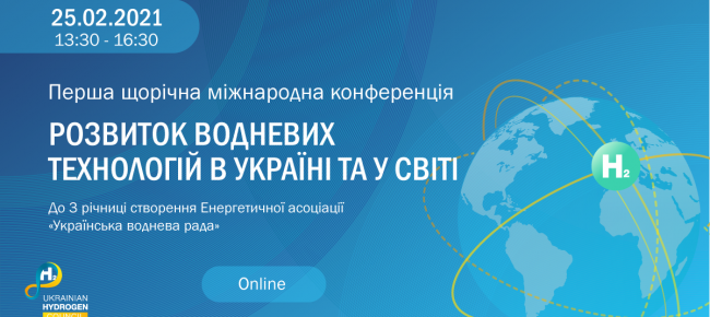 Запрошуємо 25 лютого 2021 року взяти участь у першій щорічній міжнародній конференції на тему «Розвиток водневих технологій в Україні та у світі» з нагоди третьої річниці створення Енергетичної асоціації «Українська воднева рада».