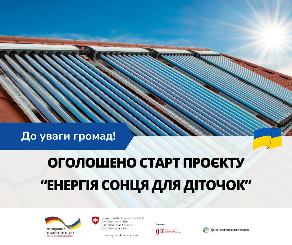 В Україні стартує проєкт «Енергія сонця для діточок». Держенергоефективності оголошує старт конкурсу серед громад для закладів дошкільної освіти України в рамках проєкту «Енергія сонця для діточок».