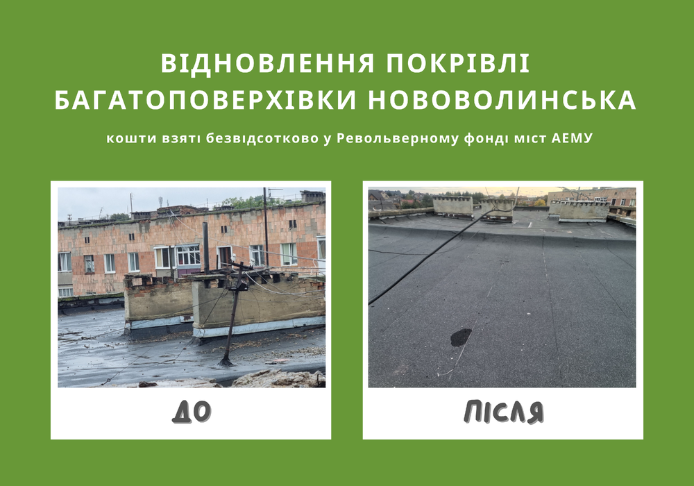 Нововолинське ОСББ замінило покрівлю багатоповерхівки за допомогою позики в Револьверному фонді міст АЕМУ