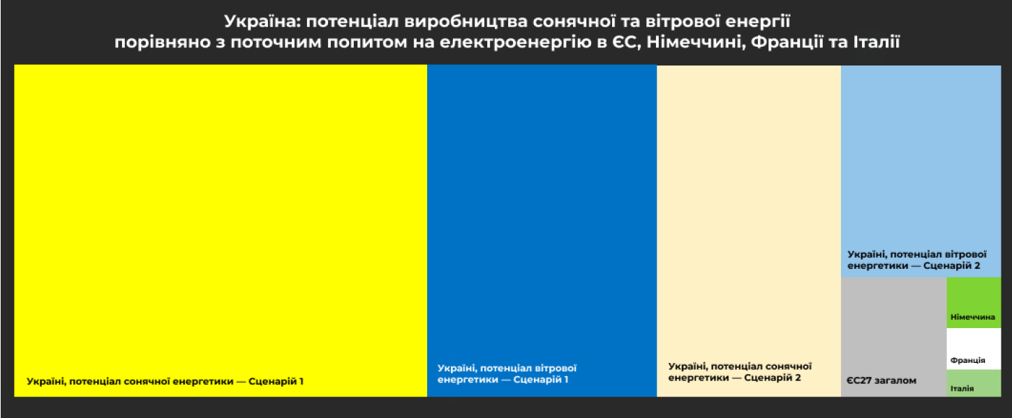 Повний звіт потенціалу сонячної та вітрової енергії України можна знайти за посиланням.