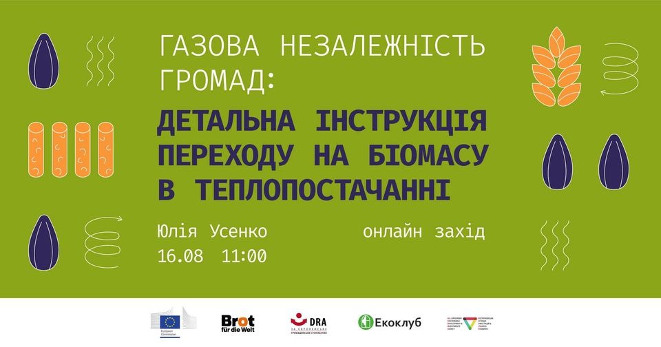 ГО “Екоклуб” у вівторок, 16 серпня, об 11:00 запрошує на онлайн-презентацію "Газова незалежність громад: детальна інструкція переходу на біомасу в теплопостачанні".