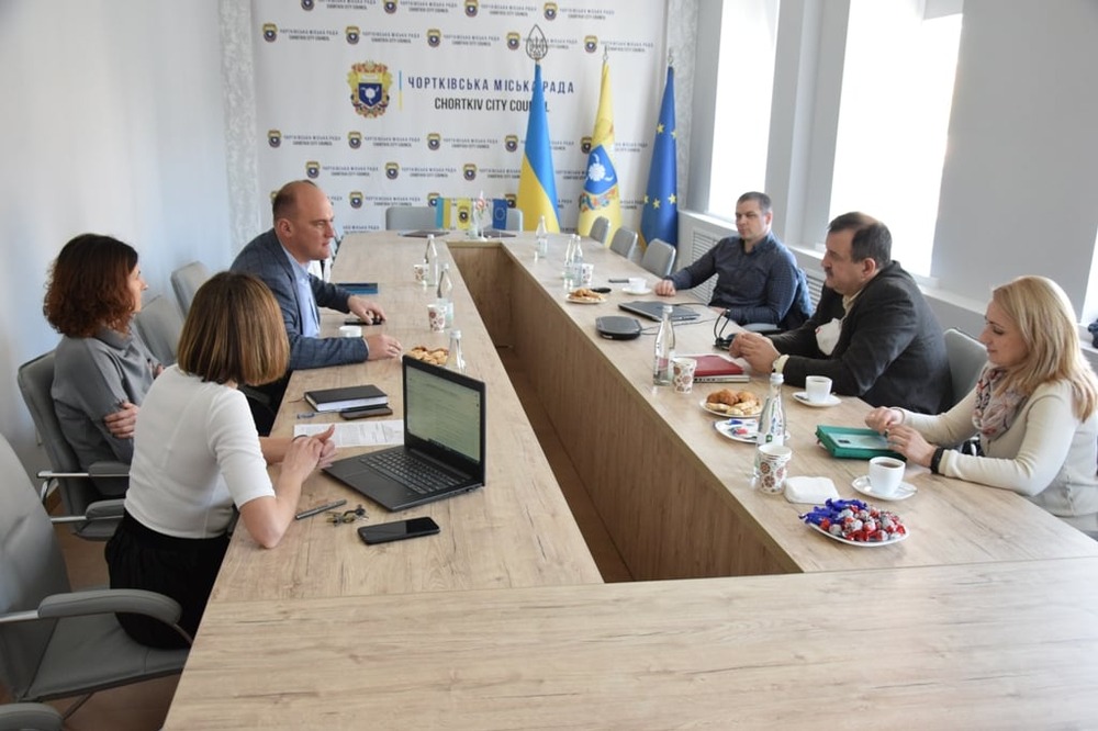 Вчора, 25 березня, команда експертів з АЕМУ - Національного Офісу Європейської Енергетичної Відзнаки (ЄЕВ) на чолі з виконавчим директором Асоціації Святославом Павлюком провела у Чорткові зустріч із керівництвом міста - міським головою Володимиром Шматьком, його заступницею Людмилою Колісник та начальницею відділу муніципального розвитку, міжнародного співробітництва та енергоефективності Чортківської міської ради Оксаною Сегін. Головною темою відвертої та плідної розмови було впровадження ЄЕВ на території громади в рамках проекту ЄС "EXCITE" Програми "Горизонт 2020". На завершення зустрічі Святослав Павлюк та Володимир Шматько підписали угоду про співпрацю в справі впровадження Відзнаки у Чорткові.