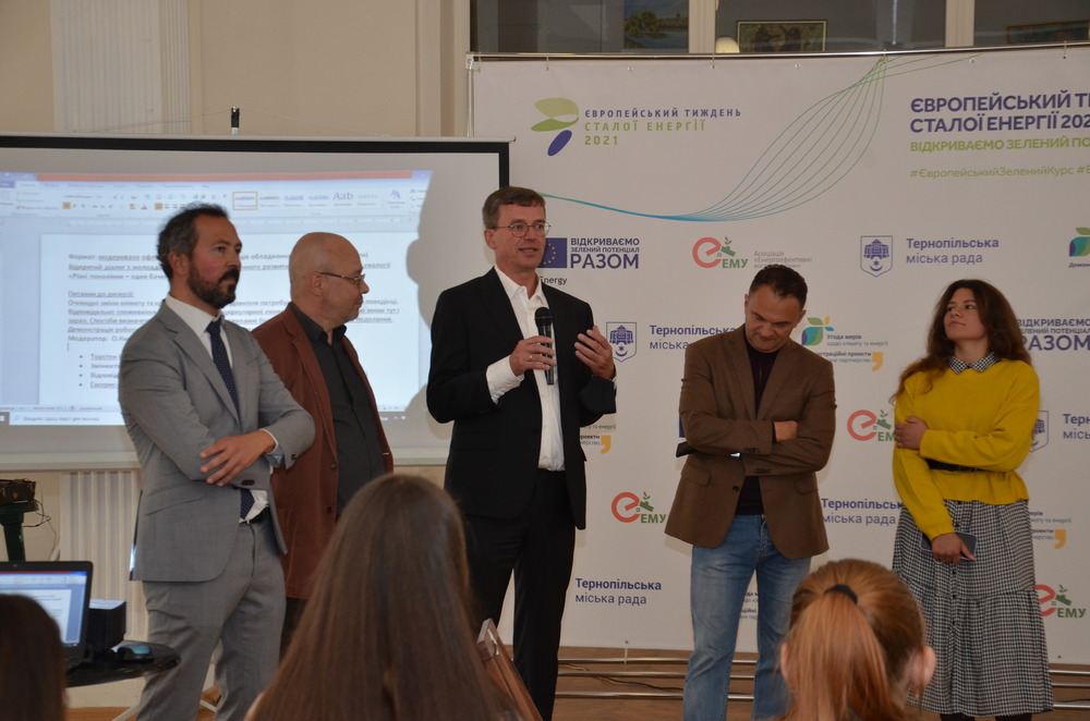 1 жовтня, напередодні офіційного відкриття ЄТСЕ, у тернопільському Західноукраїнському університеті відбулася відкрита дискусія, організована Асоціацією «Енергоефективні міста України», на тему "Зміни клімату: чи можуть українські міста стати кліматично нейтральними" за участю керівництва Тернополя, очільників українських громад, представників делегації ЄС в Україні, представників бізнесу, МФО, освітніх закладів та міжнародних проектів.