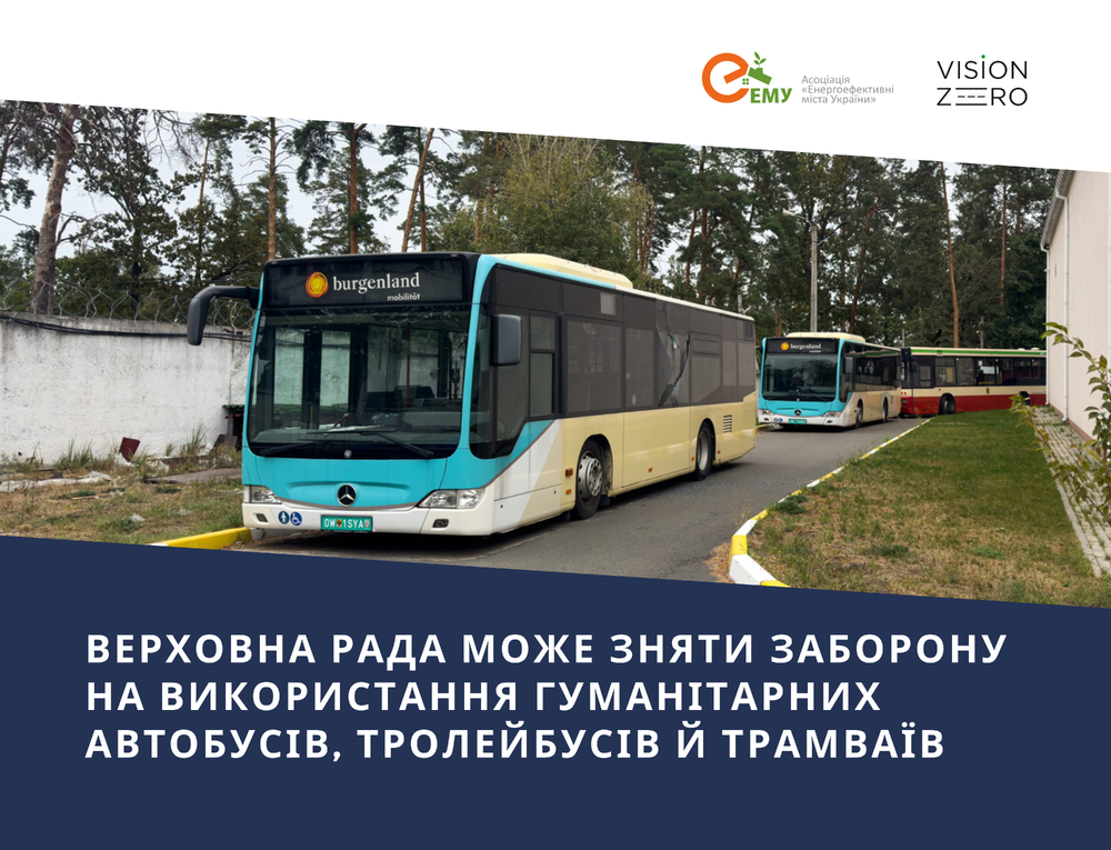 Зняття законодавчої заборони на використання “гуманітарного транспорту” на маршрутах було однією з рекомендацій змін до державної політики, що були розроблені ГО “Vision Zero” на підставі аналізу інформації від міст та опубліковані у лютому 2024 року. Зокрема, Рекомендація 3.1. передбачала: “Внести зміни до нормативно-правових актів, що дозволять використання рухомого складу отриманого як гуманітарна допомога, на маршрутах з отриманням доходу (оплати за проїзд).
